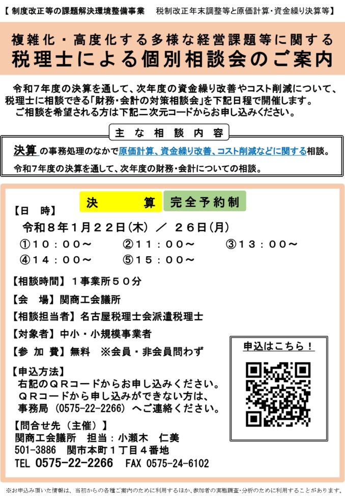 | 講師・相談員 | 名古屋税理士会派遣税理士 |